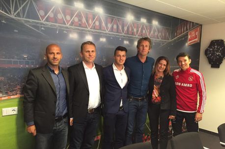 La semnarea contractului, Ajax a fost reprezentat de fostul mare jucător Marc Overmars (dreapta), directorul sportiv al clubului. În stânga, agentul de jucători Cătălin Sărmășan