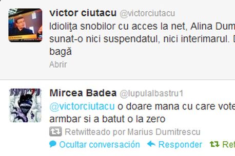 Mircea Badea și Victor Ciutacu au pornit un adevărat război împotriva medaliatei cu argint la Olimpiadă, în proba de judo, Alina Dumitru. Nemulțumiți de o declarație a vicecampioanei olimpice, care și-a permis luxul de a-și exprima părerea vizavi de referendum, cei doi angajați ai Antena 3 au trecut la ironii grosolane, pe twitter.