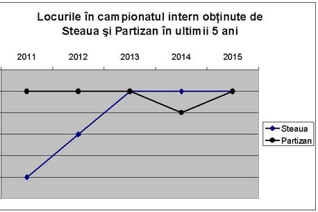 > Cele două campioane care se întâlnesc pe Arena Națională miercuri, în prima manșă a „dublei” eliminatorii, domină autoritar, în ultimul cincinal, competițiile interne. Steaua a luat titlul în România în ultimii trei ani consecutiv, pe când Partizan a câștigat patru din ultimele cinci campionate în Serbia.