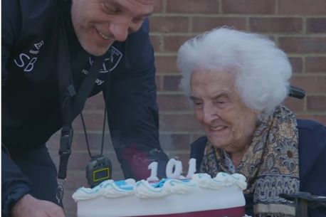 Dacă la împlinirea vârstei de 100 de ani a jucat în filmul clubului pe care îl iubește de o viață, la 101 de ani a petrecut chiar alături de protagoniștii echipei.