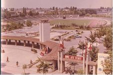 Stadionul din „Parcul Sportiv Dinamo”, așa cum arăta în primii ani, înainte de orice modernizare. Un ochi critic ar putea observa modificările mult prea mici între această poză și felul în care arată stadionul la final de 2014. Foto: voiebuna.wordpress.com