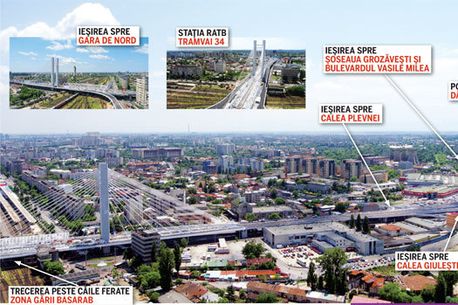 podul hobanat peste zona Gării de Nord. Bretelele de acces au 1.126