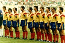România 1990, înaintea optimilor de finală ale Cupei Mondiale, cu Irlanda. Al patrulea din dreapta: Răducioiu. Lângă el, Lupescu. FOTO: Adevărul