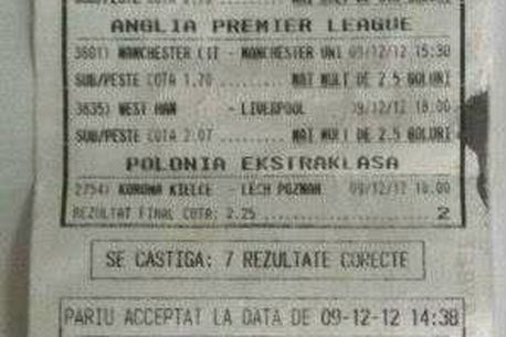 Să joci 100 de ron pe un bilet cu 7 meciuri și o cotă de aproape 360 pare nebunie curată, în condițiile în care mulți pariori au probleme și când vine vorba de un singur meci pe bilet, însă un român din Voluntari a dat lovitura testându-și norocul la maximum.