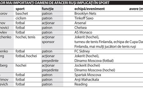 Conflictul din Crimeea, început în urmă cu mai mult de o lună, poate afecta sportul din toată lumea. UE și Statele Uniteau au trecut la sancțiuni drastice față Rusia pentru că Federația nu și-a retras armata din sud-estul Ucrainei. În urma unei ședințe de urgență din urmă cu două săptămâni, Uniunea Europeană a blocat conturile a 18 oficiali din fostul guvern al Ucrainei, guvern care era susținut de la Moscova. În urmă cu o săptămână, președintele Americii, Barack Obama, a făcut publică o listă cu oficiali ruși care nu vor mai primi viză pentru SUA, dar și blocarea activităților economice cu America. Printre ei se numără mai mulți oligarhi, care au investit sume importante în sport. Gennady Timchenko și frații Rotenberg, Boris și Arkady, se află, și ei, pe „lista neagră” a americanilor. Cei trei sunt implicați în conducerea echipei de hochei finlandeză Jokerit dar și în alte sporturi. Timchenko este un pasionat de tenis, sponsorizând mai mulți jucători din ATP, dar și un turneu de pe teritoriul Finlandei. Boris Rotenberg este președintele lui Dinamo Moscova, echipă antrenată de Dan Petrescu, în timp ce Arkady este președintele aceluiași club, dar la secția de hochei. Pe lângă cei trei, Alisher Usmanov, al doilea acționar al lui Arsenal, dar și Roman Abramovici, patronul lui Chelsea, care este cunoscut ca fiind unul dintre preferații lui Putin, sunt în pericol de a le fi blocate afacerile în UE.