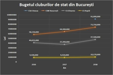 Cifrele arată că patru cluburi sportive de stat importante pentru România – CSA Steaua, CS Dinamo, CSM București și CS Rapid – consumă, anual, sute de milioane de lei.