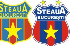 Sigla din stânga e cea cu care echipa de fotbal a Armatei din 1986 a câștigat Cupa Campionilor Europeni. Sigla din dreapta e cea pe care Gigi Becali a înregistrat-o în 2004 la OSIM, iar CSA a reușit anularea ei pentru că era evident că e inspirată din marca deținută de Clubul Sportiv al Armatei