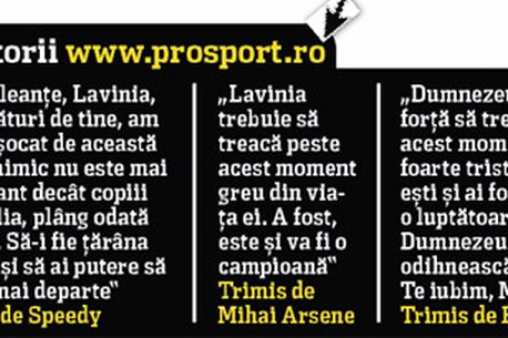 „Viața mea depinde de cea a Denisei. Nu mă pot dezlipi de ea, tot timpul meu este al ei. Nu este sacrificiu, este doar iubirea de mamă. Ea este totul pentru noi”, ne mărturisea, în urmă cu câteva zile, cu voce tristă Lavinia. Cuvintele se pierd în timp, ceea ce rămâne este durerea. Vie și copleșitoare. Viața micuței Denisa Florentina s-a curmat brusc, la fel cum a început. Patru ani de suferință, în care multipla campioană a luptat, minut cu minut, pentru fetița ei. Ani în care a sperat și nu s-a îndoit niciodată că, până la urmă, va fi un copil normal. Concursul vieții pe care părea să-l câștige după ce Denisa începuse să facă primii pași și să meargă la o grădiniță specială i-a lăsat un gust amar lui Milo.