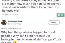 „De ce nu a putut fi Mike Ashley în elicopter în locul porprietarului lui Leicester?”, „Măcar dacă ar fi fost elicopterul lui Mike Ashley care s-a prăbușit” sau „Mă întreb dacă Stan Kroenke folosește un elicopter”, au fost alte comentarii cărora li s-a răspuns pe măsură din partea alor utilizatori.