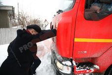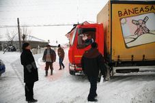 În Vrancea, Copos a făcut spectacol. A verificat personal termenul de valabilitate al alimentelor, le-a dat indicații șoferilor și s-a implicat în deblocarea camionului, după ce acesta a rămas înszăpezit.