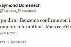 Retras din fotbal, fostul selecționer al Franței, Raymond Domenech, a păstrat multă libertate de exprimare, de data aceasta pe site-urile de socializare. În martie 2013, Domenech și-a exprimat părerea despre meciul pe care fosta sa echipă l-a susținut în preliminariile pentru Cupa Mondială, împotriva Georgiei, încheiat cu 0-0: „Am mai spus-o: Benzema și-a confirmat inutilitatea, iar Ribery a fost mereu intermitent. Asta este, mergem înainte!”.
