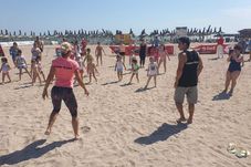 Cei doi au făcut o demonstrație de Beach Training pentru copii. Aceștia au făcut mișcare cu zâmbetul pe buze alături de campioni și de părinți. Pe lângă cele trei titluri olimpice, Marian Drăgulescu este de opt ori campion mondial și de zece ori campion european.