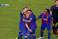 Ronaldinho s-a făcut remarcat încă din primele minute când a oferit o pasă de gol, fără să se uite, iar Giuly a transformat-o în gol. Fostul mijlocaș Ludovic Giuly (40 de ani) a reușit dubla în Beirut, iar cel de-al treilea gol marcat de Barcelona a fost al lui Simao.