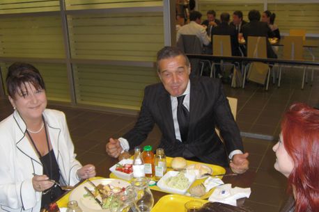 Patronul Stelei a profitat ieri de pauza de o oră făcută pentru numărarea voturilor și a căutat un loc unde să servească prânzul. Cum la restaurantul de lux al Parlamentului European nu mai erau locuri, patronul Stelei a intrat nonșalant în autoservirea de la parter și a mâncat la „împinge tava”. Mai mult, Becali nu a avut nici o problemă să stea aproape 20 de minute la o coadă uriașă, cu tava în brațe, așa cum se vede și în imaginea pe care v-o prezentăm în exclusivitate. „Care-i problema? N-am mai mâncat așa din tinerețe, e drept, dar nu am nici oproblemă, așa servesc prânzul toți parlamentarii, oameni normali”, a spus Becali, care apoi s-a așezat la o masă alături de pesedista Rovana Plumb.