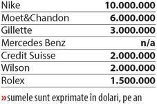 Sunt văzuți în reclame purtând pantofi sport sau ceasuri care strălucesc orbitor. Imaginile atrag atenția telespectatorilor doar pentru că personajele sunt unele care au succes. Este vorba de marii sportivi și de firmele care s-au „legat” de ei pentru a le fi promovate produsele. Bineînțeles, acest „favor” costă foarte mult, iar în funcție de carisma sportivului, încasările din publicitate pot fi mult mai mari decât cele primite din performanțele sportive efective.