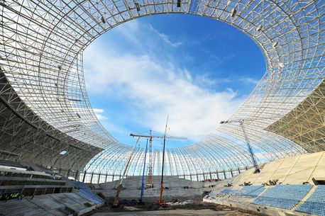 Stadionul din Craiova va avea, după remodelare, cu aproape 10 metri mai puțin în înălțime: 50,14 metri în loc de 60 de metri. Explicația oficială este că așa va rezista la vânt. Pe de altă parte, economia realizată la materiale va acoperi costurile reparațiilor. FOTO: Mediafax