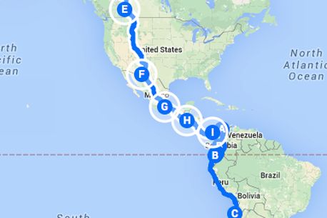 kilometri. Întreaga distanță va fi parcursă pe bicicletă, excepție făcând tranziția dintre Panama în Columbia, unde