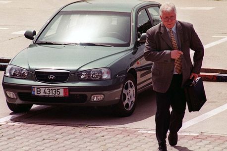 Imagine din 24 mai 2002, cu comandantul de atunci al CSA Steaua, colonelul Laurențiu Roșu, în drum spre Adunarea Generală a FC Steaua. FOTO: Mediafax