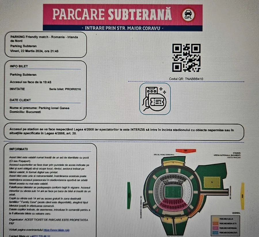 Atunci am continuat deplasarea! Am oprit pentru controlul mașinii și ne-am îndreptat spre parcarea subterană! După aceea s-a văzut ce s-a întâmplat! M-au scos din mașină și mi-au luat cheile, deși mașina mea bloca intrarea în parcarea subterană. Și vreau să mai lămuresc o informație care a apărut în presă, cum că nu am avut bilet de parcare, am avut și vi-l prezint.