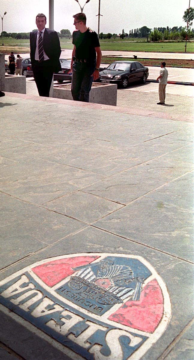 (Steaua si Dinamo au remizat, scor 1-1. Era etapa a patra a campionatului. Gigi Becali, alături de Viorel Păunescu. Data 16 Septembrie 2002)