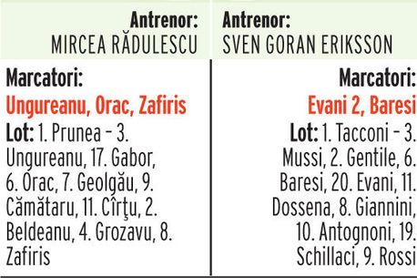 Celebrul tehnician suedez Sven Goran Eriksson a spus că se simte excelent în România și s-a arătat impresionat de forma arătată de foștii componenți ai naționalelor Italiei și României, care au evoluat în amicalul de ieri. „Poporul român e extraordinar. Mereu ați avut un fotbal de calitate, tehnic. Meciul de azi (n.r. – ieri) a fost ca o întoarcere în timp. Marile glorii se țin încă destul de bine”, a spus Eriksson. Un amplu interviu cu antrenorul suedez veți putea citi în ProSport-ul de luni.