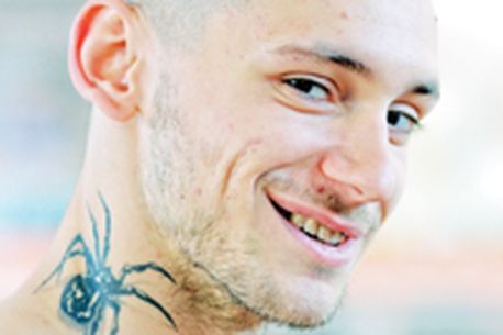 S-a împrietenit treptat cu tehnica de inscripționare, iar acum totul i se pare floare la ureche. Și chiar lângă ureche are piesa de rezistență: o văduvă neagră! „Nu o doamnă ciocolatie, ci un păianjen care mușcă instinctiv, dar unora le place cel mai mult vrăjitorul de pe abdomen!”, continuă băcăuanul, care nu se lasă până nu se va îmbrăca în tatuaje.