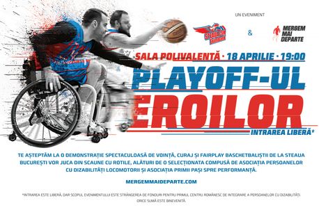Playoff-ul Eroilor este denumirea oficială a unui proiect special la a cărui ultrașii Stelei pun umărul. Este vorba despre un meci de baschet în scop caritabil organizat luni 18 aprilie, de la ora 19:00, la Sala Polivalentă din București. Asociația Persoanelor cu Dizabilități Locomotorii și Asociația Primii Pași Spre Performanță alături de echipa de baschet Steaua București lansează astfel campania „Mergem Mai Departe”, o inițiativă al cărei scop final este strângerea de fonduri pentru construirea unui prim centru de integrare a persoanelor cu dizabilități din România.