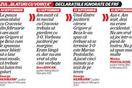 Ancheta făcută de ofițerul de integritate al federației, Dumitru Hurdubaie, fusese o farsă. Mai mulți jucători de la Voința Sibiu nominalizați de George Hermann au fost chemați la sediul FRF, mai puțin Postolache care a fost contactat doar prin telefon.