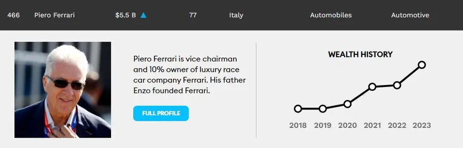 Romina Ferrari și soțul ei Piero Ferrari sunt cei care dețin un imperiu financiar uriaș. Topul Forbes arată că urmașul celebrului fondator al companiei de lux italiene are o avere de trei ori mai mare ca a lui Ion Țiriac.
