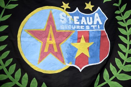 Prima siglă a CSA Steaua și sigla din momentul câștigării Cupei Campionilor într-o combinație grafică a suporterilor. În 2014, FC FCSB a cerut Armatei permisiunea să folosească o compoziție vizuală din care făceau parte sigla cu „A” și cifrele palmaresului stelist. Documentul a fost depus de Talpan la dosar miercuri. FOTO: Mediafax