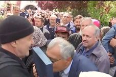 La slujbă au asistat aproximativ 7.000 de persoane, iar Gigi Becali a făcut „baie” de mulțime. A oferit bani nevoiașilor, iar oamenii i-au pupat mâna.