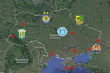 Distribuția echipelor din prima ligă din Ucraina. Șahtior și Metalist, actualele echipe ale puterii, joacă la granița cu Rusia