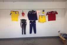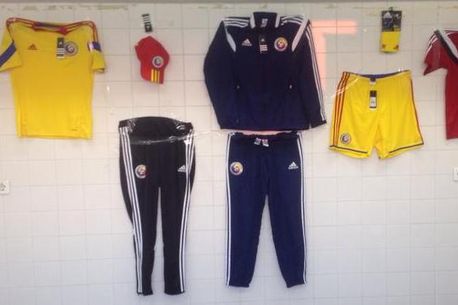 Aparent, totul s-a făcut ca în Occident, cu panouri de carton care să atragă suporterii spre standul unde se vindeau tricouri, fulare și șepci în culorile naționalei. „Tricolorii sunt aici! Cumpără simbolurile Echipei Naționale, de acum ai FRF lângă tine!”, scria pe panouri. Totuși, uitați-vă cu atenție la poza de mai sus! Priviți cum sunt prinse produsele sponsorului oficial Adidas pe perete placat cu faianță. Benzi de leucoplast fixează tricourile, pantalonii, jambierele și celelalte exponate, cu prețuri cuprinse între 36 și 387 de lei.