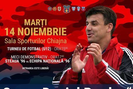 Ziua va începe cu un turneu de fotbal U 12, de la ora 15:00, urmând ca de la 17:40 să se desfășoare o partidă în care pe parchetul sălii vor intra foști colegi ai sătmăreanului de la Steaua și din Generația de Aur.