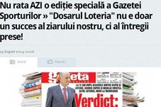 „Dosarul Loteria nu e doar un succes al ziarului nostru, ci al întregii prese!”, au titrat luni, 25 august 2014, colegii de la Gazetă la scurt timp după anunțarea verdictului. Succesul în meseria de jurnalist de investigație, dar mai ales eșecurile, se trăiesc individual.