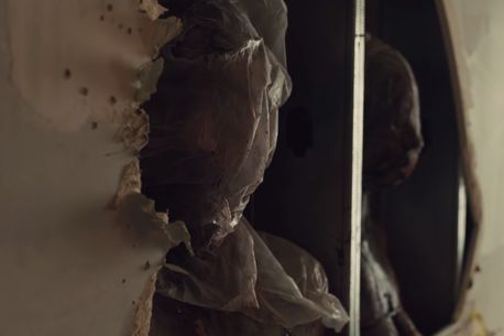 Scenă terifiantă din filmul Sicario, cu victimele traficanților de droguri ascunde după ziduri de rigips
