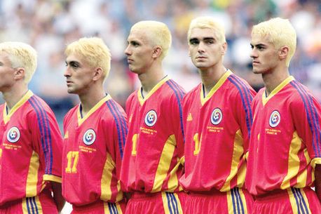 6. Dan Petrescu vopsit blond în cap, alături de ceilalți tricolori: „Uite țiganii blonzi! Ha-ha! Ce gest mai bun pentru a arăta unitatea unei echipe decât ăsta poate să existe? Toată lumea zicea atunci că suntem numai grupuri-grupulețe pe la națională și noi ne-am vopsit toți blond! Dacă se vopseau doar cinci, atunci arătam că e o problemă, dar eram toți așa”.