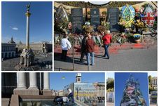 Pe durata evenimentelor descrise de protestatari drept „Revoluție” au murit 104 civili și 17 dintre reprezentanții forțelor de ordine. Fiecare dintre aceștia are acum propriul loc în Piața Independenței, un mic altar înconjurat de borduri de ciment în care poza îi este vegheată de lumânări aprinse și flori proaspete, aduse zilnic de cei care vin să își afișeze respectul pentru victime. Întregul loc seamănă mai degrabă a curte de mănăstire decât a piață dintr-un oraș. Diferențele între cele două poze sunt cât se poate de grăitoare. Dacă în cea din dreapta, făcută acum de Alexandru Hojda, singurele lucruri ieșite din normal sunt pânza de pe clădirea Casei Sindicatelor și panourile foto-tribut către victime, în cea din stânga este surprins momentul de la finalul protestelor. Atunci se numărau morții, se îngrijeau răniții și se sărbătorea într-un decor sumbru scăparea de Ianukovici.