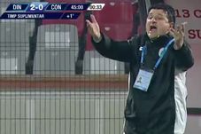 Adrian Falub, surprins în momentul în care urlă la fundașii săi centrali, apoi face un semn de neputință spre bancă