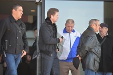 Apăsați de durere și tristețe, aceștia au preluat sicriul și l-au depus pe terenul de pe Arena Națională. Steaua și-a trimis și ea reprezentații pentru a aduce un omagiu fostului mare internațional român. Primii steliști care au sosit la stadion au fost Valeriu Argăseală și Mihai Stoica, cei care au depus o coroană cu flori.