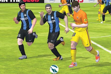 Controlul în FIFA 13 pentru mobile este adaptat dispozitivelor touch (foto 1). Spectacolul este și în această versiune (2), care are în premieră multiplayer online (3) și pe Chivu în duel cu Messi (4)