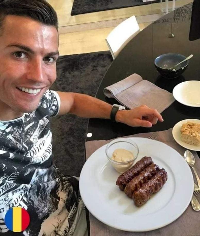Însă, pentru simplul fapt că este obsedat de ceea ce consumă, Cristiano Ronaldo a ajuns să fie și ținta ironiilor pe rețelele de socializare. Unii cârcotași din România au trucat o poză cu fotbalistul portughez, în care acesta stă la o masă și are în față o farfurie cu trei mici. De asemenea, lângă mititei este așezat și un mic bol cu nelipsitul muștar.