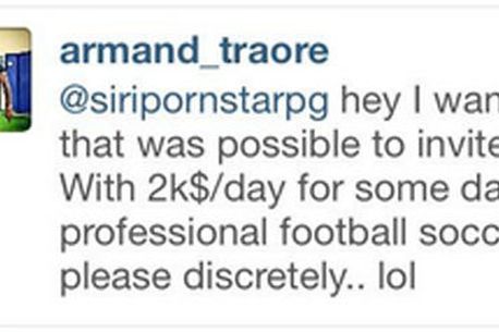 Armand Traore, de la Queen’s Park Rangers, a comis-o zilele trecute, când i-a adresat o invitație unei actrițe porno, pe numele ei Siri, sub ochii tuturor. Interesant este faptul că, deși profilul putea fi vizualizat de mai multă lume, el solicita discreție din partea destinatarei mesajului.