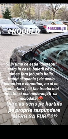 ”Și în timp ce ăștia ”deștepți” stau în casă, băieții ce au rămas fără job prin Italia, Franța și Spania (acolo carantina e carantină, nu ai ce căuta afară) își fac treaba mai liniștiți și mai nederanjați ca niciodată. Oare au scris pe hârtiile pe proprie răspundere ”merg să fur!”?”, a tunat Popa.