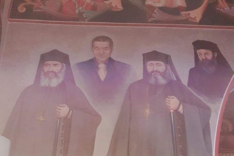 Dar, în 2012, opera ce-l reprezenta pe Gigi Becali a fost ștearsă și amplasată în dreapta intrării în lăcaș, alături de alți preoți.