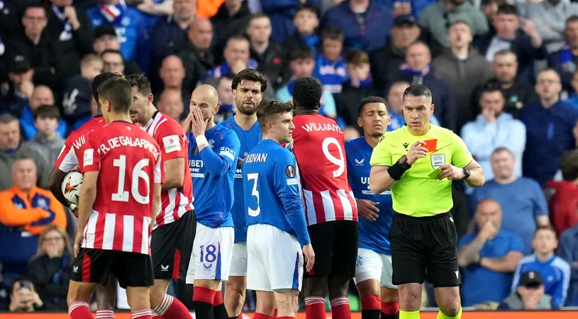 Istvan Kovacs, decizie cu scandal! A dat cartonaș roșu în Rangers – Bilbao, după ce a fost chemat la VAR