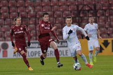 Min. 40. Octavian Popescu este lovit de Arlauskis, iar goalkeeperul CFR-ului este eliminat.