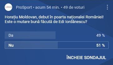 Rezultatul a fost la limită. 49% dintre urmăritorii emisiunii au fost de părere că Edi Iordănescu a luat cea mai bună decizie debutându-l pe Horațiu Moldovan în defavoarea celorlalți doi portari convocați: Ștefan Târnovanu (22 de ani, FCSB) și Mihai Popa (22 de ani, FC Voluntari).