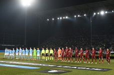 Cele doua echipe alaturi de brigada de arbitri la startul meciului de fotbal dintre CFR Cluj si SS Lazio, din cadrul UEFA Europa Conference League, desfasurat pe Stadionul Dr. Constantin Radulescu din Cluj Napoca, joi 23 februarie 2023. © FOTO:Razvan Pasarica/SPORT PICTURES