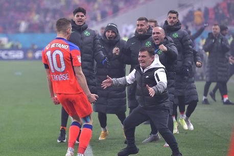 Florin Tănase, căpitanul în vârstă de 26 de ani al lui FCSB, a deschis scorul, în minutul 13, după ce a profitat de respingerea în față a portarului Horațiu Moldovan.